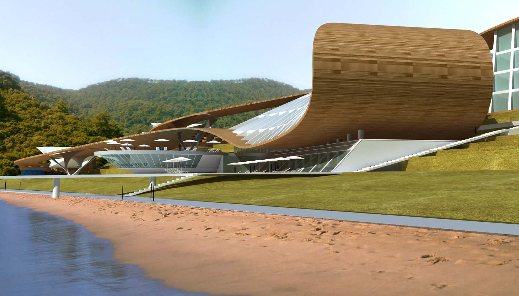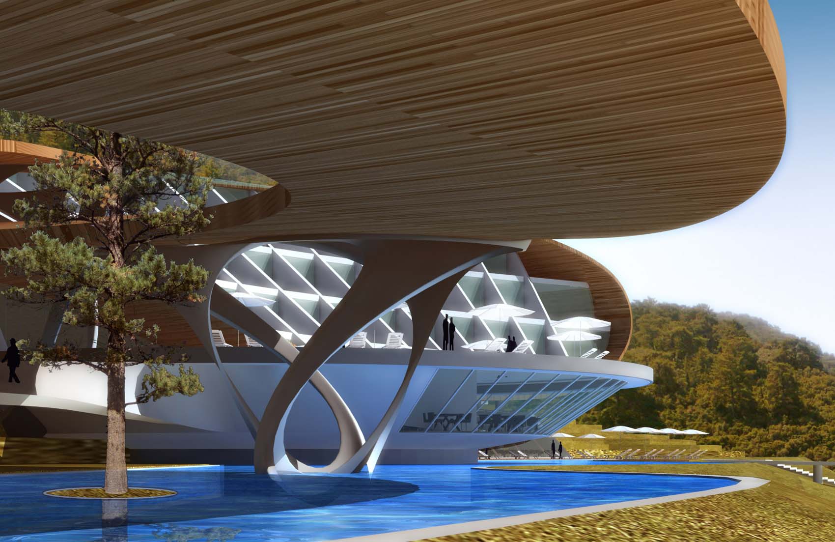 Apart from the high degree of privacy, we also tried to give a form that would integrate well with the surrounding nature which is the inspiration of the fluid wavy desgin.